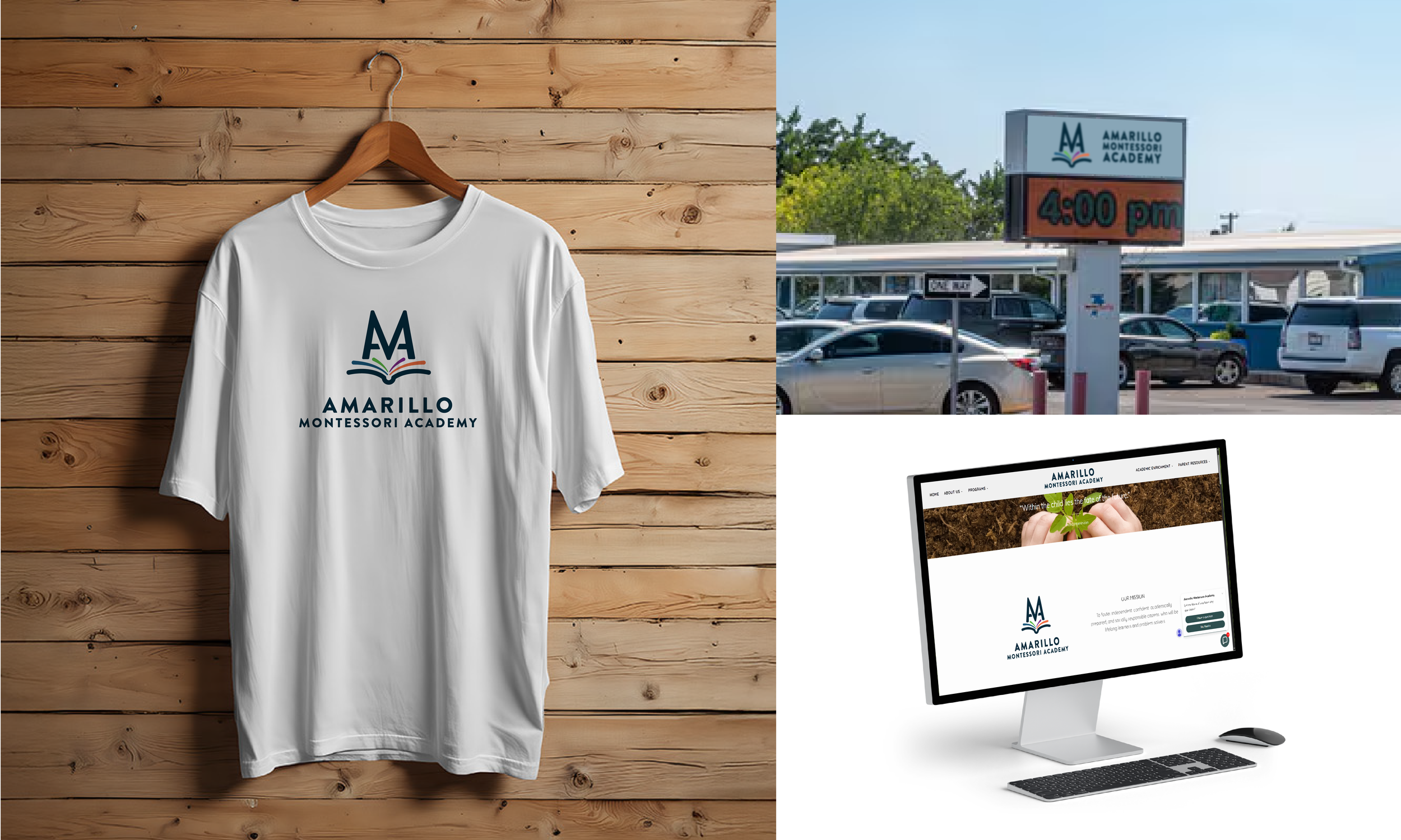 Amarillo Montessori Academy is a non-profit Montessori school whose mission is to foster independent, confident, academically prepared childre. We had the opportunity to partner with AMA on a rebranded identity. The brand included three different marks for a wide range of usages, including web, social media, and print.